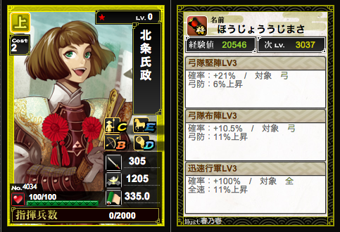 弓防の北条さんは適正悪いけど弓騎馬で加勢用に!